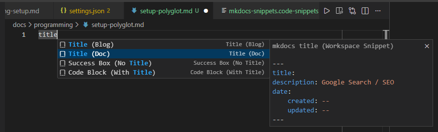 Check my VSCode setup for the snippets.
