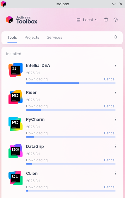 mkdir -p ~/.local/share/Jetbrains/Toolbox && cd $_